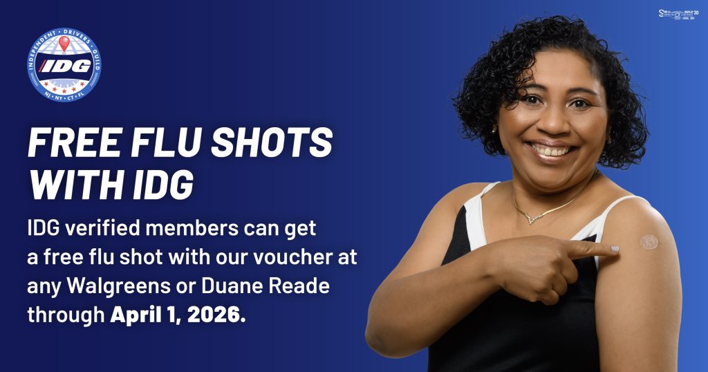 Free flu shot vouchers are provided by the Independent Drivers Guild. Become a member today and get your free flu shot!