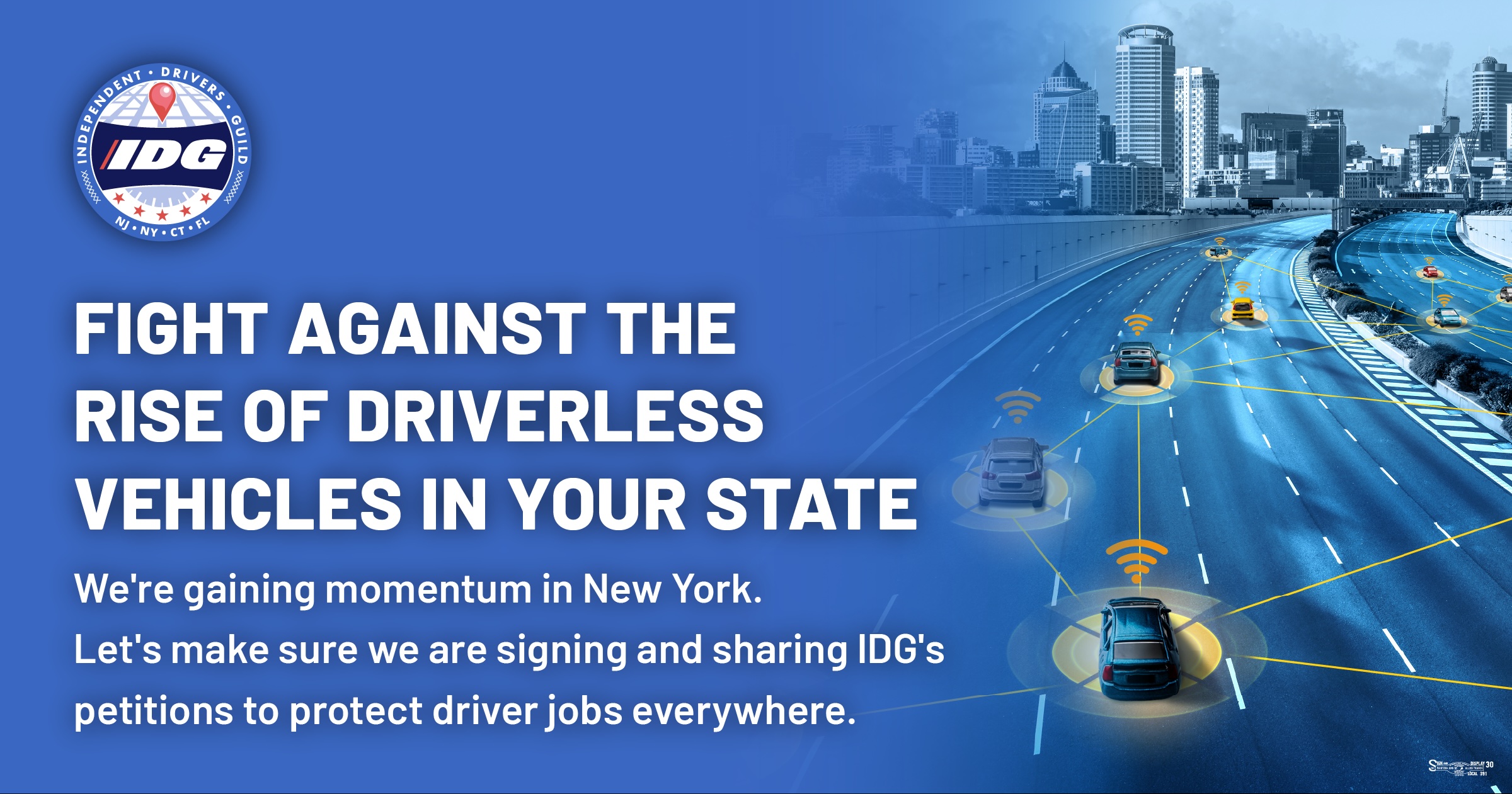 Thank you to all the IDG members who helped us reach our goal of 10,000 signatures against driverless vehicles in New York. Now, we’re on a mission for 20,000!